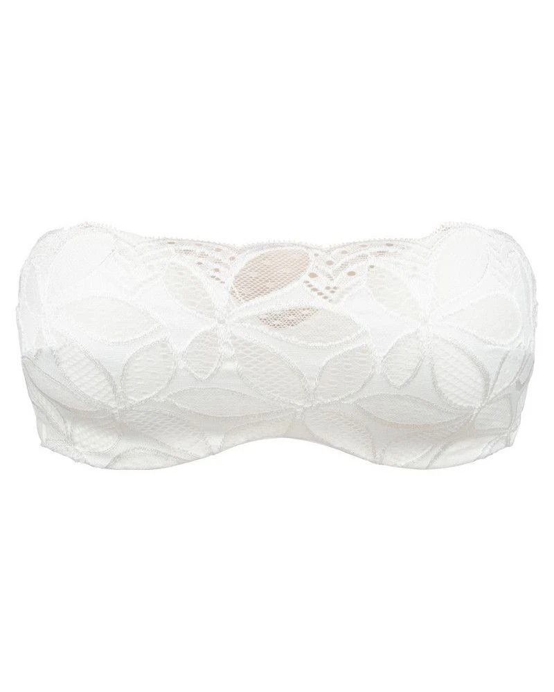 Le bandeau à bretelles amovibles de la marque Antigel offre une dentelle jacquard composée de polyamide recyclé (88%) et d’élasthanne, mono-élastique, au graphisme foral dont l’ajourage de chaque pétale est différent. Sa finesse et son tonique apportent un maintien parfait.