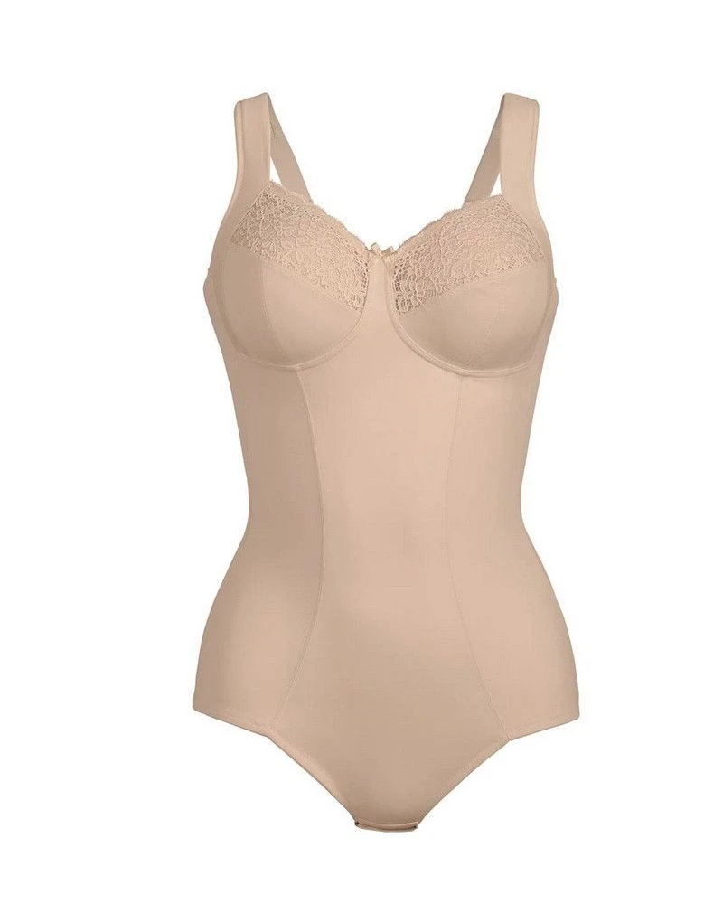 Ce combiné d’allégement sans armature offre un maintien idéal qui rend la poitrine harmonieuse même sur les grandes tailles. 75% Polyamide, 25% Elasthanne.