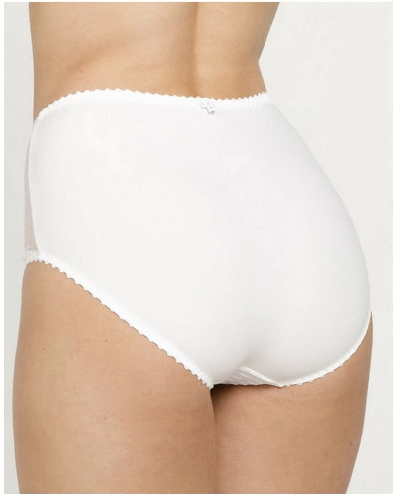 La culotte taille haute de la collection Elise par Louisa Bracq vous offre une forme couvrante et rassurante. Craquez pour son jeu de transparence et de broderie florale sur les côtés.