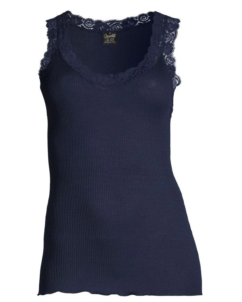 Ce débardeur Oscalito propose une maille plissée en laine et soie douce et confortable. Ce débardeur Oscalito est l’un des grands standards de la marque. Il est totalement fabriqué en Italie. (70% laine, 30% soie). Couleur – Bleu.