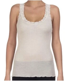 Ce débardeur Oscalito propose une maille plissée en laine et soie douce et confortable, tout en douceur, il est un des grands standards de la marque. Ce débardeur Oscalito est totalement fabriqué en Italie. (70% laine, 30% soie). Couleur – Champagne.