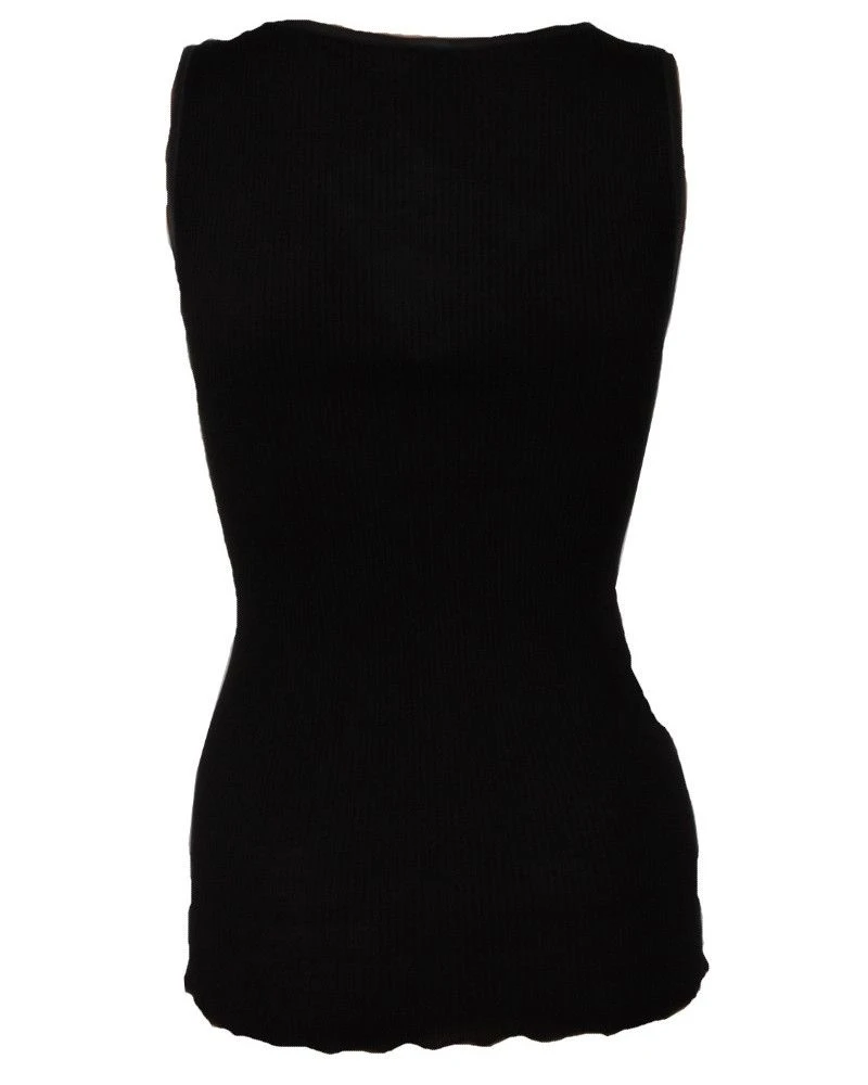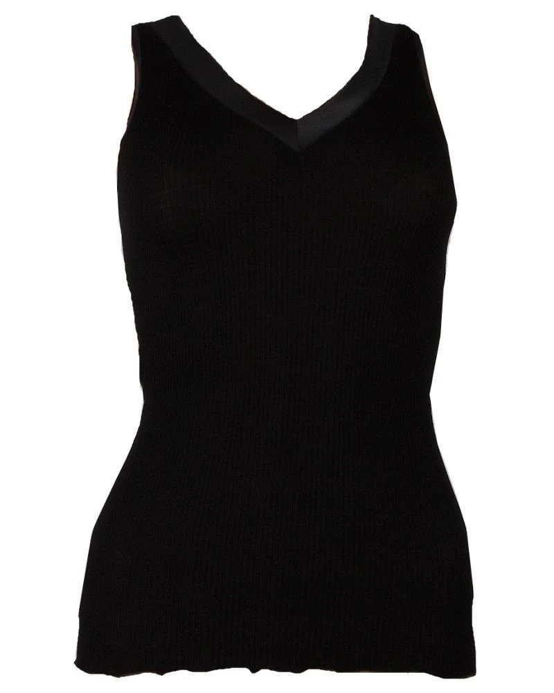 Ce débardeur Oscalito propose une maille plissée laine et soie douce et confortable. Il est totalement fabriqué en Italie. (70% laine, 30% soie). Couleur – Noir.