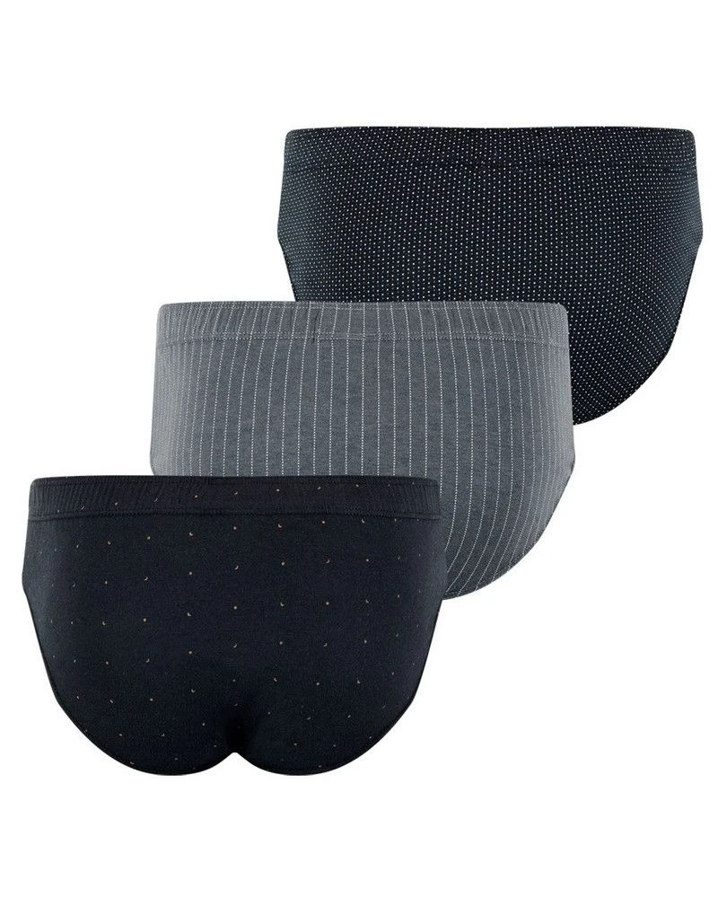 Le lot de 3 slips taille basse Motifs de la marque Eminence offre un excellent confort grâce à sa matière Jersey 100% coton, ainsi qu’une jolie esthétique grâce aux motifs variés proposés.