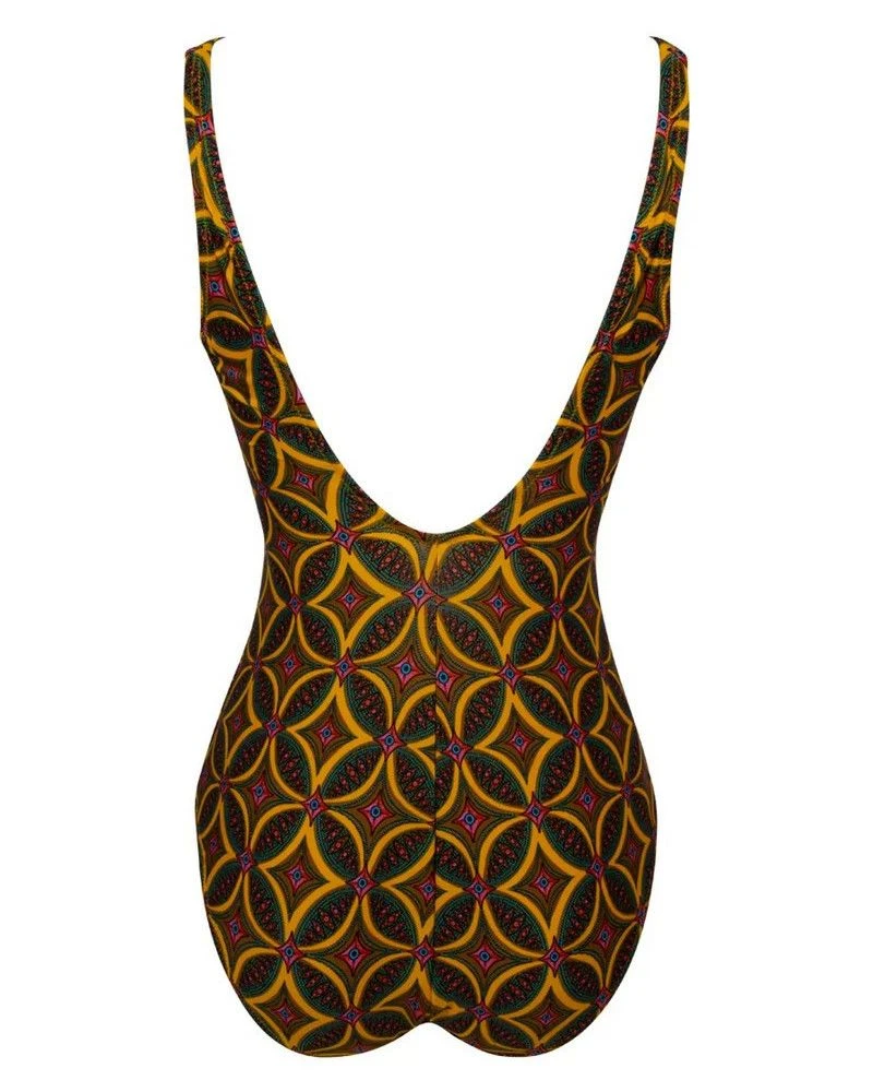 Le maillot de bain une pièce sans armature de la collection La Muse Africa vous offre un style branché avec un lien orné de perles dorées apposé devant le maillot. Pour plus de maintien, un élastique a été ajouté sous la poitrine.