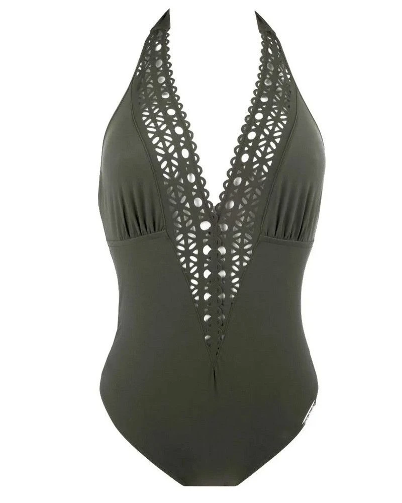 Le maillot de bain séduction de la collection Ajourage Couture vous offre une forme attractive grâce à son décolleté plongeant ajouré en dentelle et son dos nus élégant.