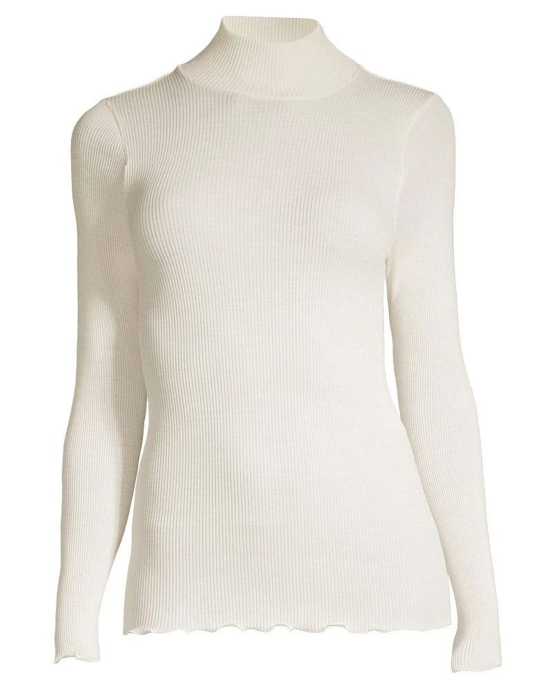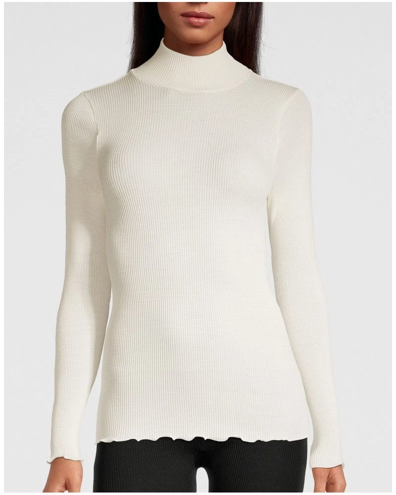 Ce top Oscalito propose une maille plissée en laine et soie douce et confortable. Il propose un col montant sobre et élégant. De plus, il est totalement fabriqué en Italie (70% laine, 30% soie). Couleur – Champagne.