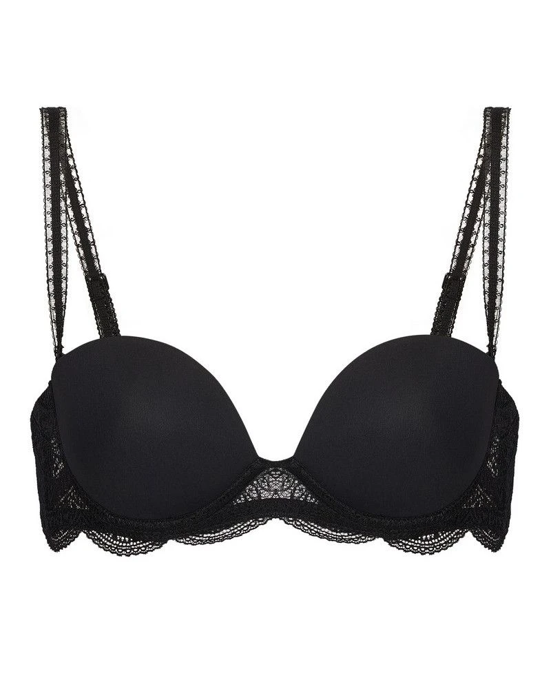 Le soutien-gorge bustier Simone Pérèle de la collection Karma offre une invisibilité sous les vêtements grâce à ses coques lisses. La dentelle apporte légèreté et sensualité au modèle.