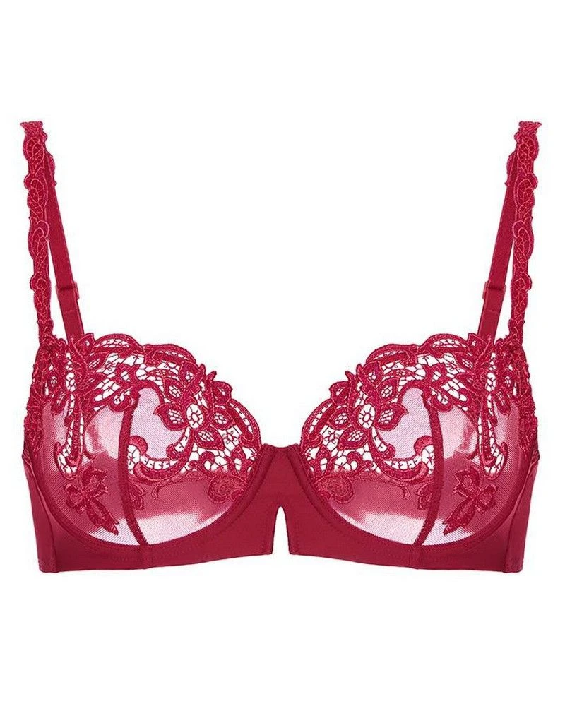 Le soutien-gorge corbeille de la collection Saga est très sensuel et confortable. Il possède des bretelles ornées de guipure et galon brodé aux bonnets pour un charme irrésistible.