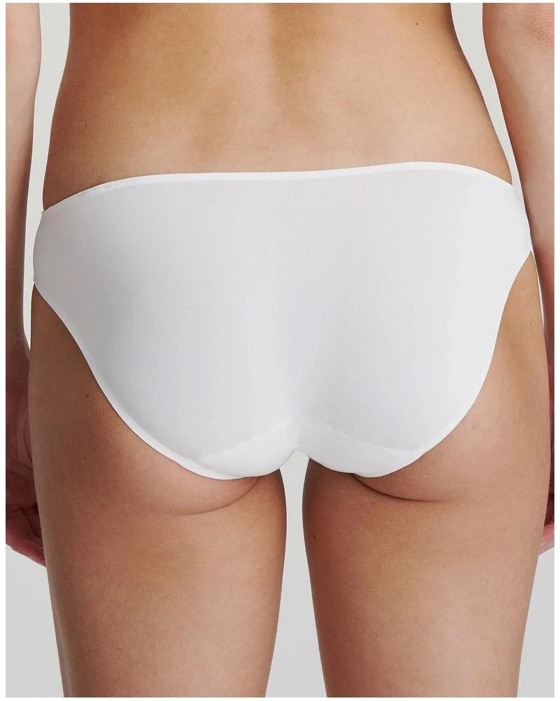 Slip brésilien TOM de la marque Marie Jo en matière ultralégère, encore plus légère que celle utilisée pour les bonnets. Finitions zéro démarcation à l’échancrure.