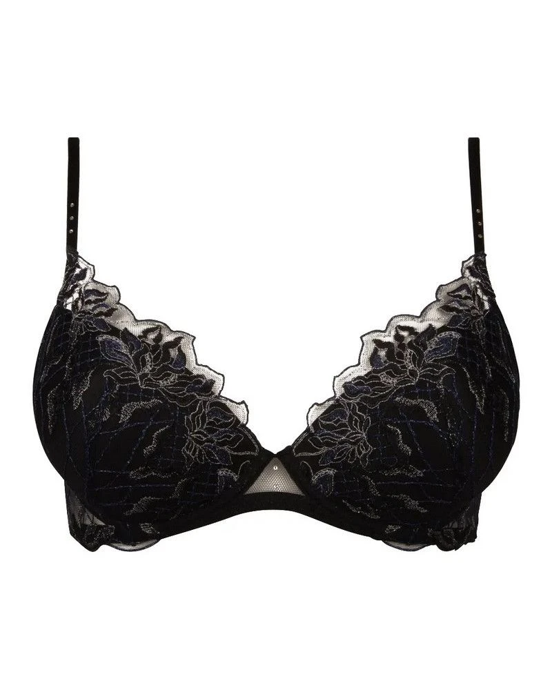 Le soutien-gorge coque à armatures de la collection Les Nuits Chics de Lise Charmel offre des coques progressives pour les bonnets A et B, ainsi que des coques light pour les bonnets C, D et E, pour un look élégant et sensuel.