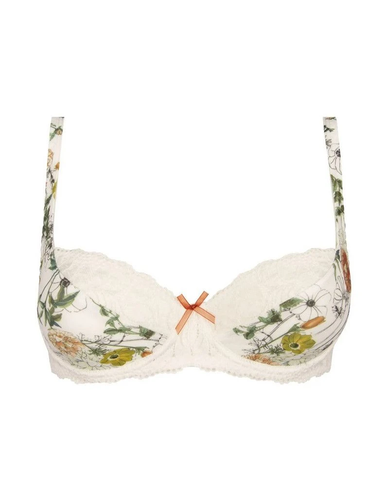 Le soutien-gorge tulipe à armatures Antigel de la collection Liberté en Fleurs offre une bordure élastique en polyamide élasthanne fantaisie à ponts. Le modèle est féminisé par un fin galon de dentelle Jacquard au dessin végétal. Les bretelles sont enrichies d’une bande en dentelle, habillant le décolleté. Pour plus de confort, le dos des bretelles est élastique. Pour embellir l’entre-gorge, un nœud orange souligné d’un liseré satin décore le soutien-gorge.